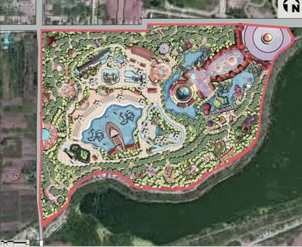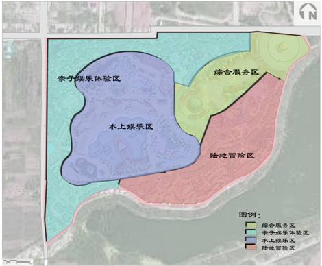 2.3功能分區(qū):根據(jù)項目地的場地情況、開發(fā)現(xiàn)狀、發(fā)展思路等,確定功能分區(qū)為:綜合服務區(qū)——仙聚蓬萊、親子娛樂體驗區(qū)——八寶樂園、水上娛樂區(qū)——八仙戲水、陸地冒險區(qū)——龍宮歷險。