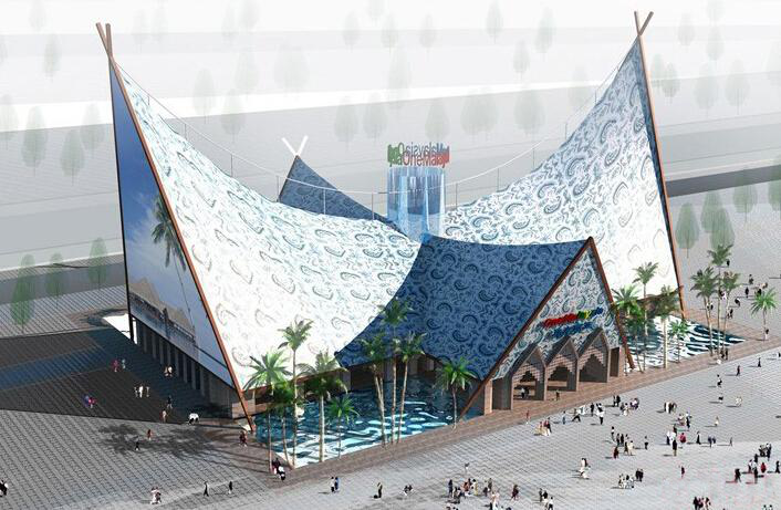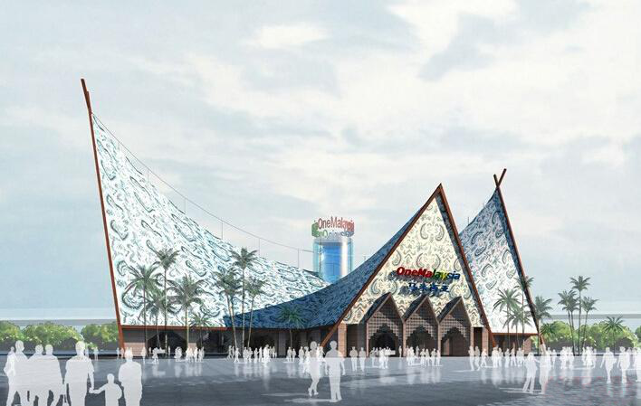 馬來西亞館將采用可循環(huán)利用的油棕、塑膠等材料建筑而成,重點(diǎn)展現(xiàn)馬來西亞的獨(dú)特風(fēng)情和團(tuán)結(jié)的民族精神。展館的設(shè)計(jì)靈感源自馬來西亞傳統(tǒng)建筑。整個(gè)展館由兩個(gè)高高翹起的坡狀屋頂組成,猶如一艘遠(yuǎn)航而來的"木船";屋頂尖端的交叉構(gòu)架是馬來西亞本土建筑的特有符號;觀光電梯被設(shè)計(jì)成吉隆坡"雙塔"摩天樓形狀。參觀者不僅可以領(lǐng)略馬來西亞檳城、馬六甲等世界文化遺產(chǎn)的魅力,體驗(yàn)普通馬來西亞家庭的樂生活,還能欣賞到特色藝術(shù)品及其制作過程。