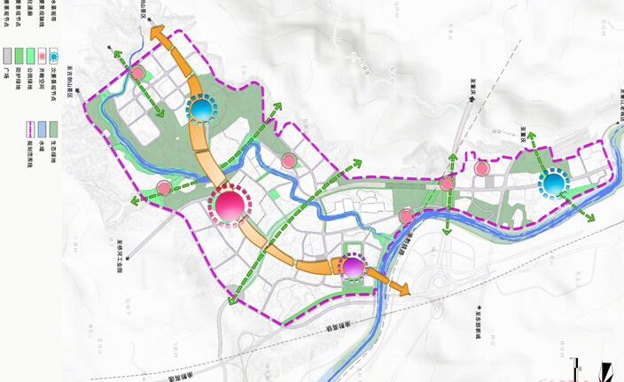 將有活力連續(xù)的街道、街區(qū)和公園用完善的步行系統(tǒng)和綠色廊道串聯(lián),加強(qiáng)山與城、水與城、山與水的對話,聯(lián)系起基地的生態(tài)要素,構(gòu)筑城市的生態(tài)基底。在這個基底之上,打造山環(huán)水繞的城市環(huán)境、高品質(zhì)社區(qū)、汽摩交易中心、社區(qū)生活中心,使基地成為未來城市的活力源泉、文化源泉、發(fā)展源泉和形象高地。