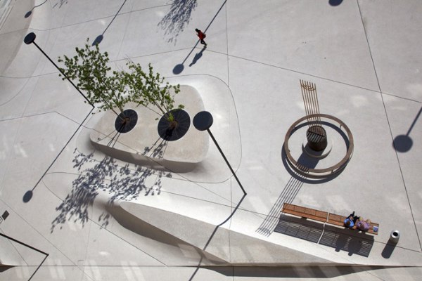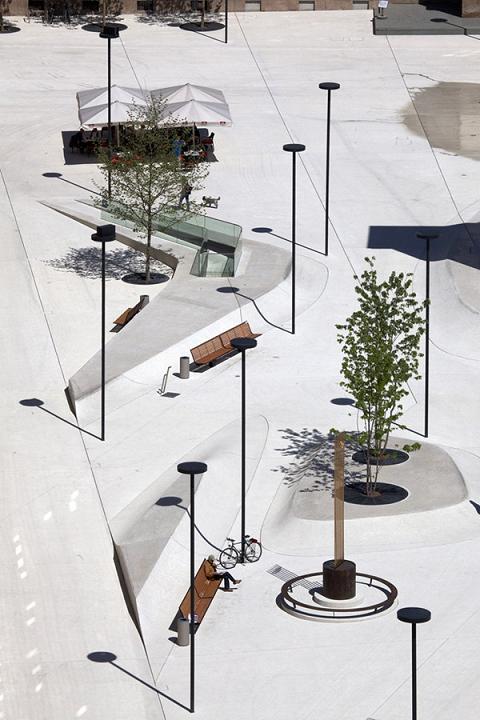 這是位于奧地利蒂羅爾州因斯布魯克的一個(gè)廣場(chǎng)改建項(xiàng)目,面積9000平米,其水泥地面如同一件雕塑作品。新廣場(chǎng)改變了原有廣場(chǎng)的氣氛,同時(shí)以一個(gè)創(chuàng)造性的,如同雕塑般的地面讓人耳目一新。