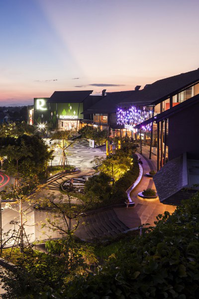 由Chanon Wangkachonkiat事務(wù)所設(shè)計(jì),購(gòu)物廣場(chǎng)為顧客提供了一個(gè)共享活動(dòng)空間,設(shè)計(jì)理念來(lái)自于周邊山區(qū)等高線地形,一些高差錯(cuò)落的臺(tái)地、路面圖案、形狀起伏的花冢、臺(tái)階、座椅及水系,將整個(gè)環(huán)境營(yíng)造出自然、生態(tài)的共享活動(dòng)空間。