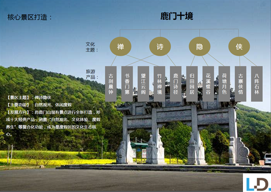 策劃思路:項(xiàng)目以隱逸文化為主題打造“鹿門(mén)十景”,形成景區(qū)旅游吸引力,二次激活鹿門(mén)山大眾旅游;開(kāi)展“慢游鹿門(mén)”工程以休閑綠道建設(shè),滿足專項(xiàng)市場(chǎng)需求,樹(shù)立景區(qū)形象;做大鹿門(mén)寺宗教旅游打造襄陽(yáng)宗教旅游第一品牌;全面強(qiáng)化景區(qū)基礎(chǔ)設(shè)施建設(shè),優(yōu)化景區(qū)旅游環(huán)境,打造 AAAA 級(jí)旅游景區(qū)。